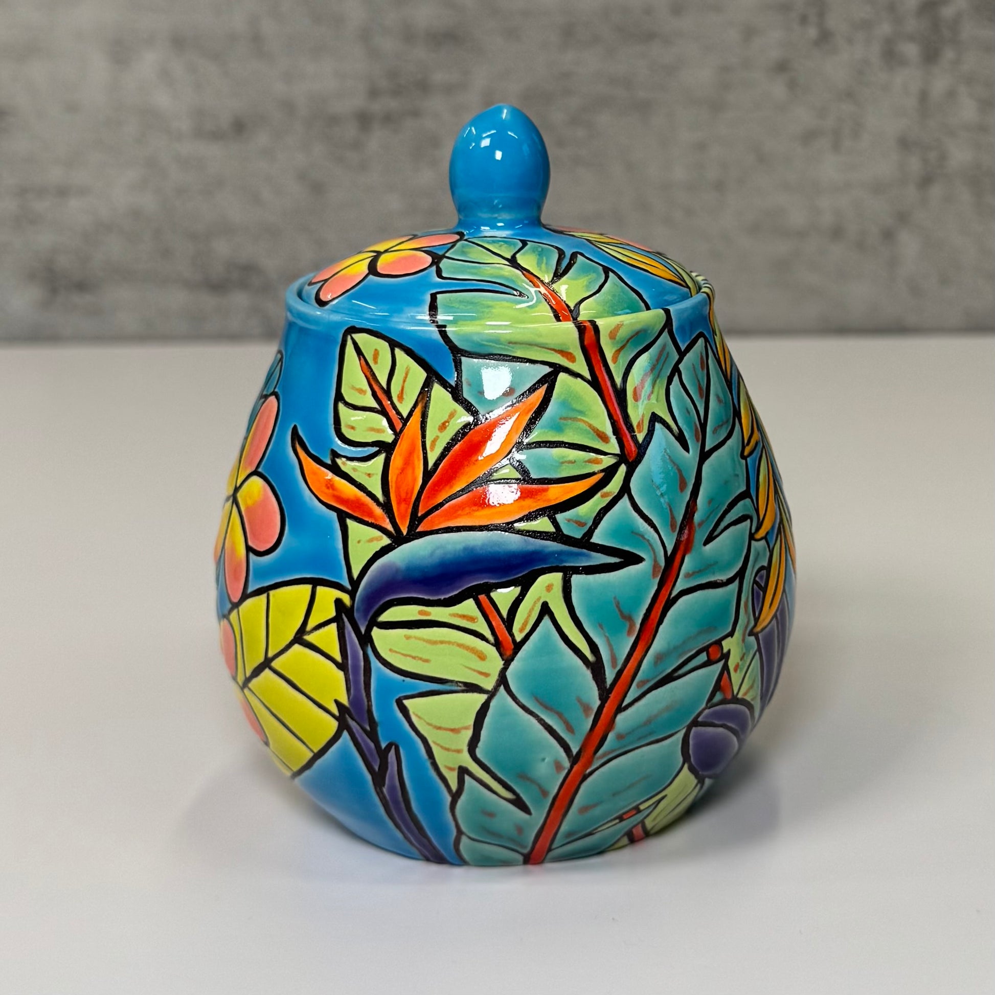 19 Cuerda Seca Tropical Flamingo Jar - Stoneware