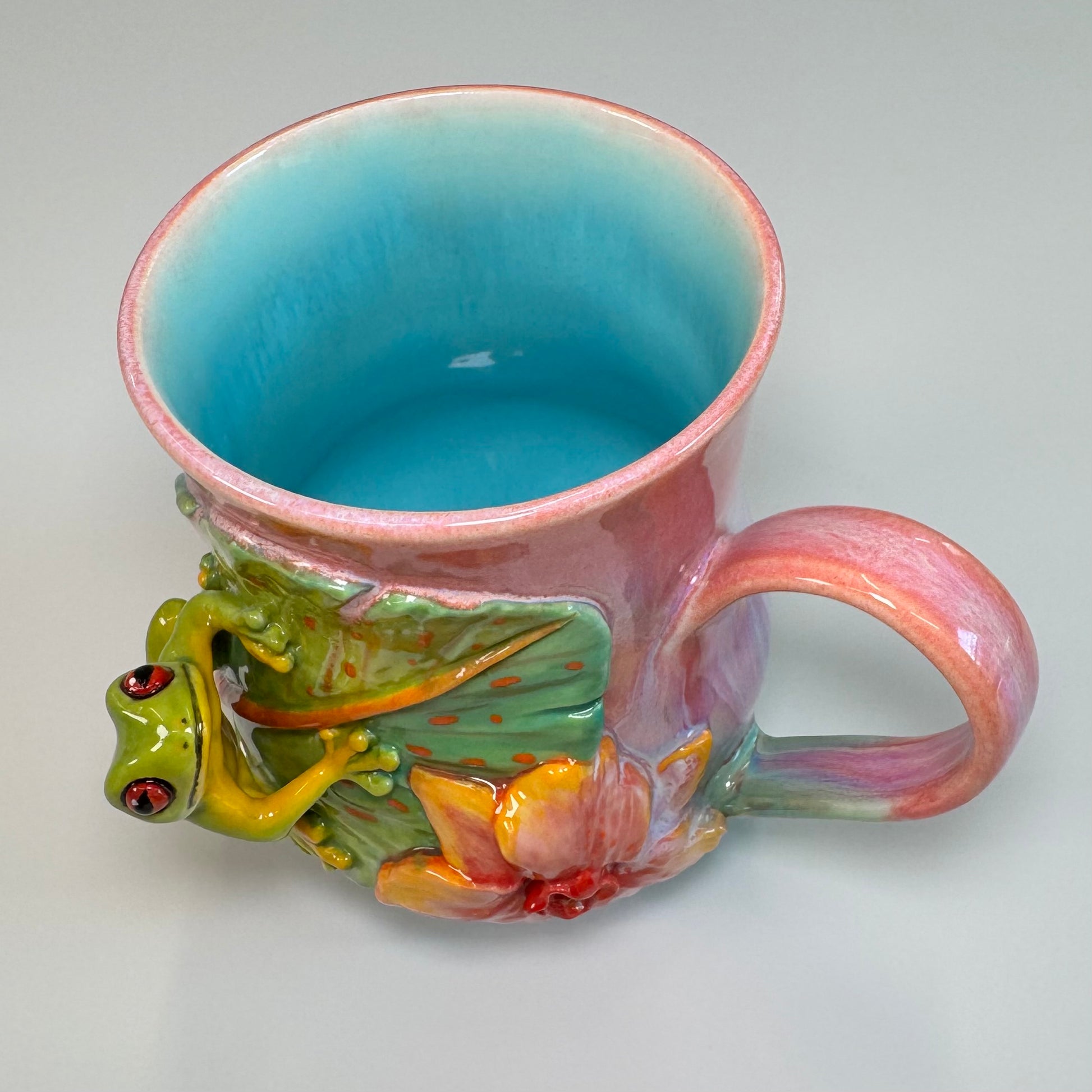 Beautiful porcelain Australian red-eyed tree frog sculpted mug. A true art piece where sculpture meets functional ware!